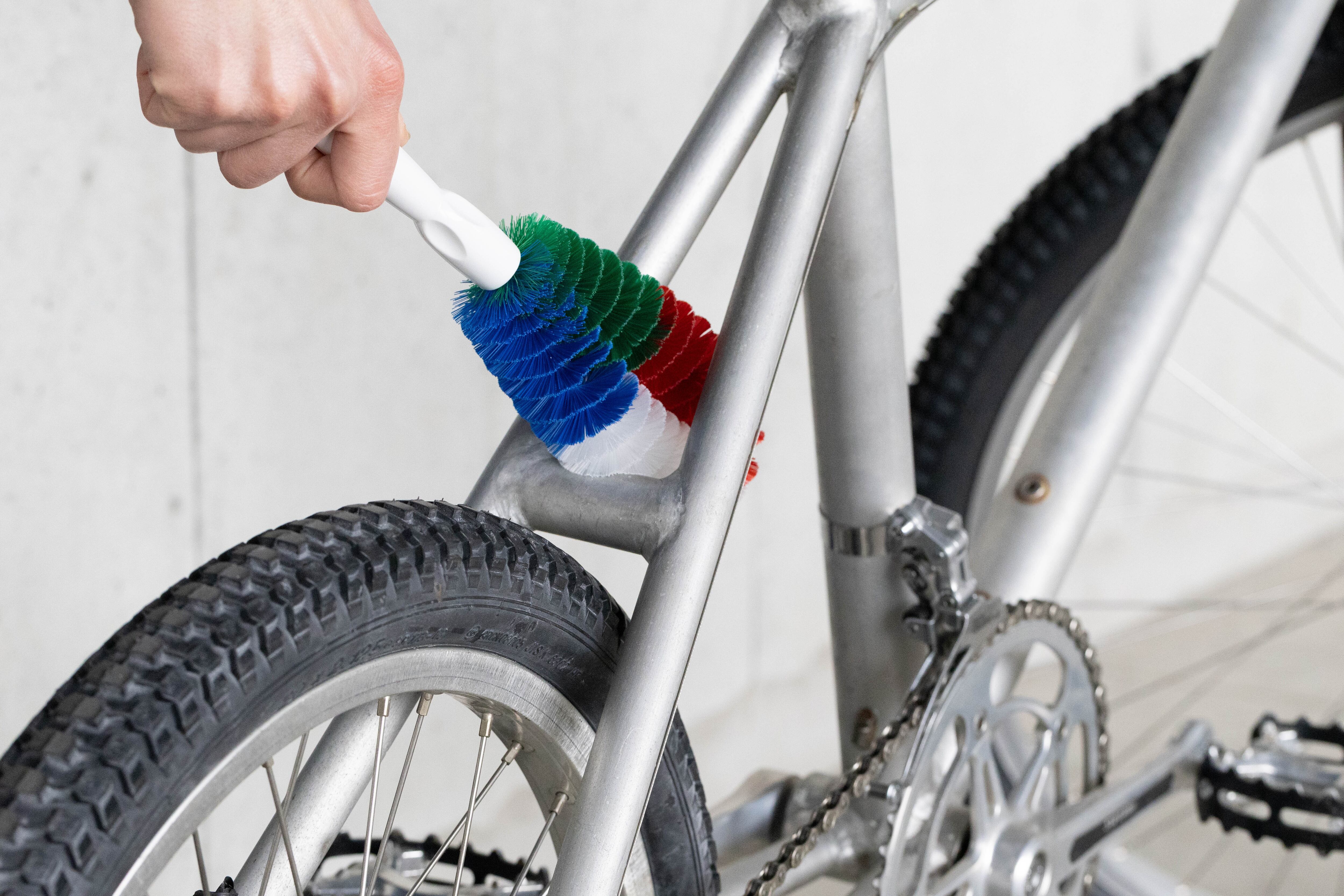 2025.10.19(日) 関西シクロクロス 第1戦 レインボーハブゲカップ 桂川にて、2,3位の方への景品として提供させて頂いたブラシになります。シクロクロス後のタイヤについた泥を落とす為に特注しております。シクロクロス用のチューブラータイヤを痛めないよう、毛の柔らかさとコシに拘っています。たっぷりの水と洗剤と共にお使いください。